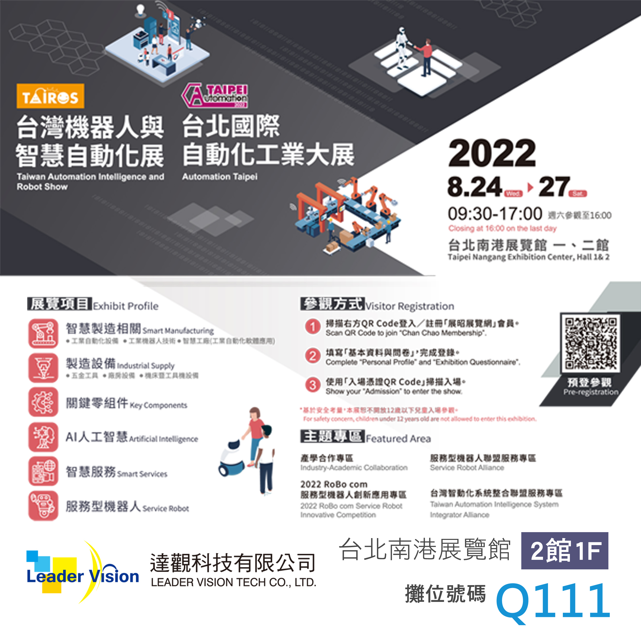 免費參觀【展位:Q111】達觀科技有限公司邀請您蒞臨參觀「2022 台灣機器人與智慧自動化展 \ 2022台北國際自動化工業大展」