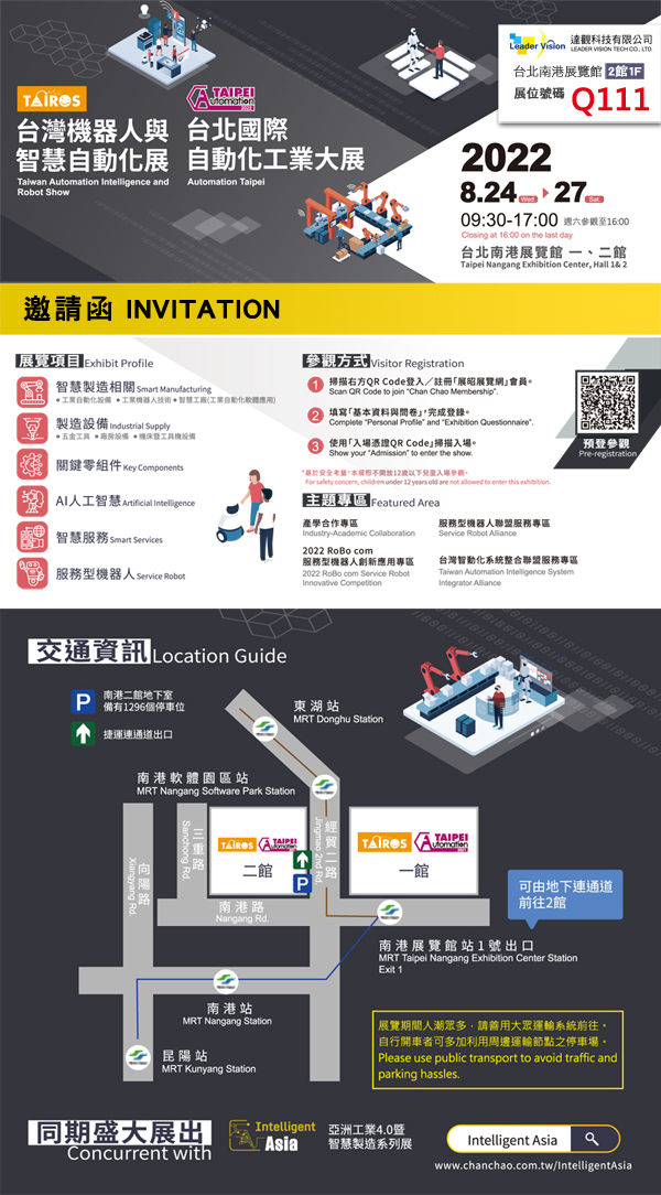 免費參觀【展位:Q111】達觀科技有限公司邀請您蒞臨參觀「2022 台灣機器人與智慧自動化展 \ 2022台北國際自動化工業大展」